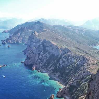 Photo prise au pied de la tour génoise de Turghiu qui culmine à 331 mètres au-dessus de la mer, à la pointe du Capo Rosso (cap rouge), classé au patrimoine de l'humanité par l'UNESCO. Une balade d'une beauté absolue où l'on randonne, tout le long du cap, entre la réserve naturelle de Scandola et le golfe de Porto.
