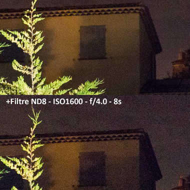 Un locos se demandait quel serait l’intérêt du filtre ND en nocturne sur une scène à forte dynamique. Comme on peut le voir...aucun. Par contre le temps de pose plus long augmente bien le bruit.