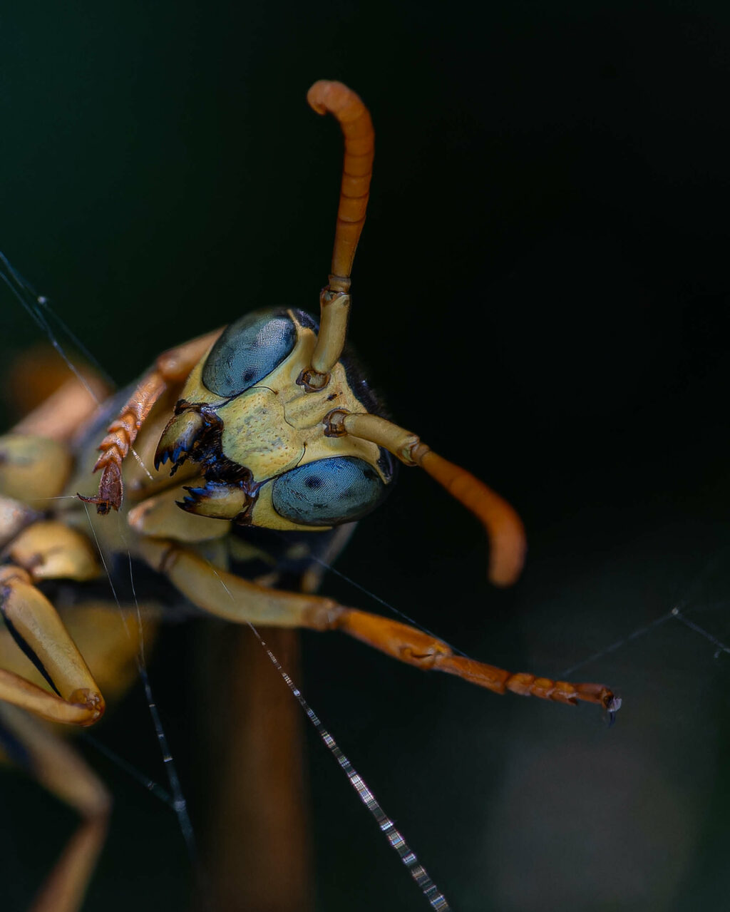 La guêpe poliste, prise au piège d'une araignée… s'est débattue avec tant d'énergie qu'elle a pu se libérer et s'envoler gaiement :-)