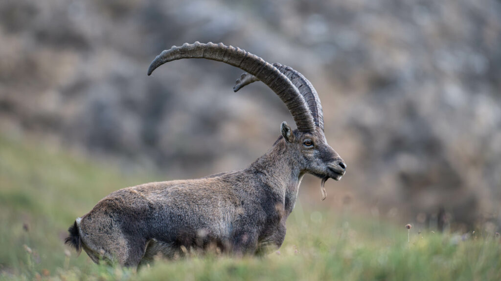 Vieux mâle bouquetin photographié dans le parc de la Vanoise à 2500 mètres d'altitude